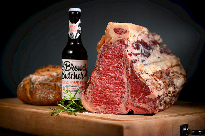 Die Schlachtung erfolgt in unserem EU-zertifizierten Schlachtbetrieb in Perach unter höchsten Standards. Die anschließende Fleischreife in unseren Dry-Aged-Kammern unter speziellen klimatischen Bedingungen dauert fünf bis sechs Wochen. Erst dann erfolgt die Endzerlegung und Verarbeitung in Edelstücke und spezielle Schmankerl wie Würste und Griebenschmalz.